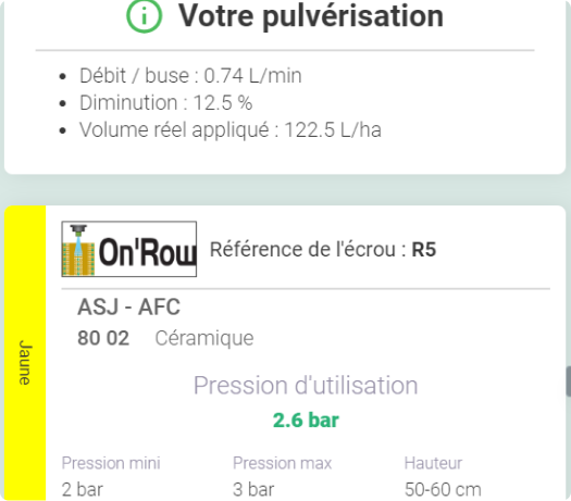en fonction de vos pratiques, une combinaison buse - écrou On'Row vous est proposée