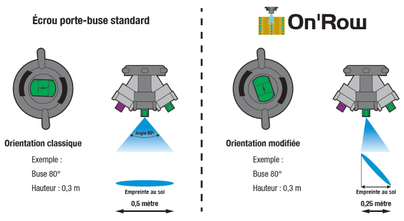 vous facilite la vie quant au choix de la buses homologuées ZNT et de l'écrou On'Row adaptés à vos pratiques de traitement sur le rang